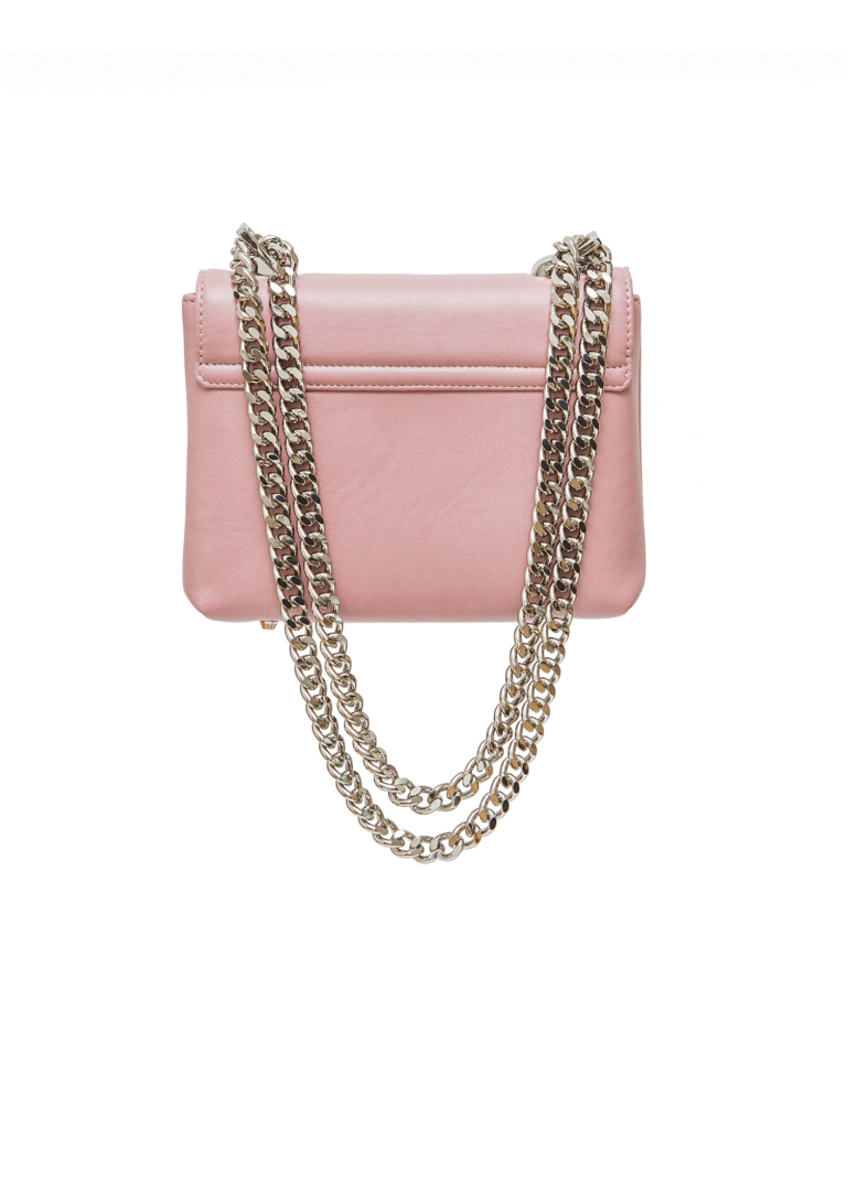 PINK LEATHER AND CRYSTAL FLOWER BAG