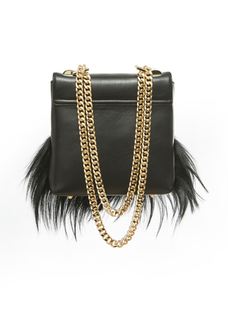 BLACK LEATHER AND MOUNTAIN GOAT FUR BAG