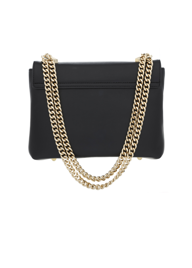 BLACK LEATHER AND CRYSTAL FLOWER BAG LARGE