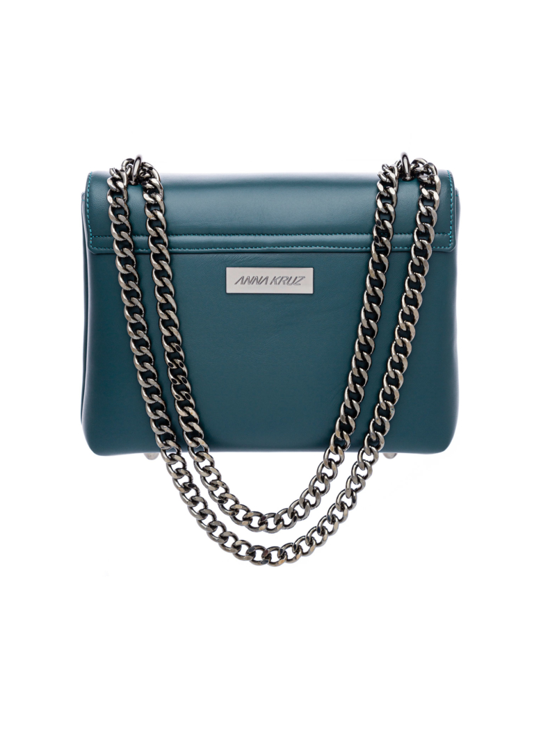 BLUE LEATHER AND CRYSTAL FLOWER BAG