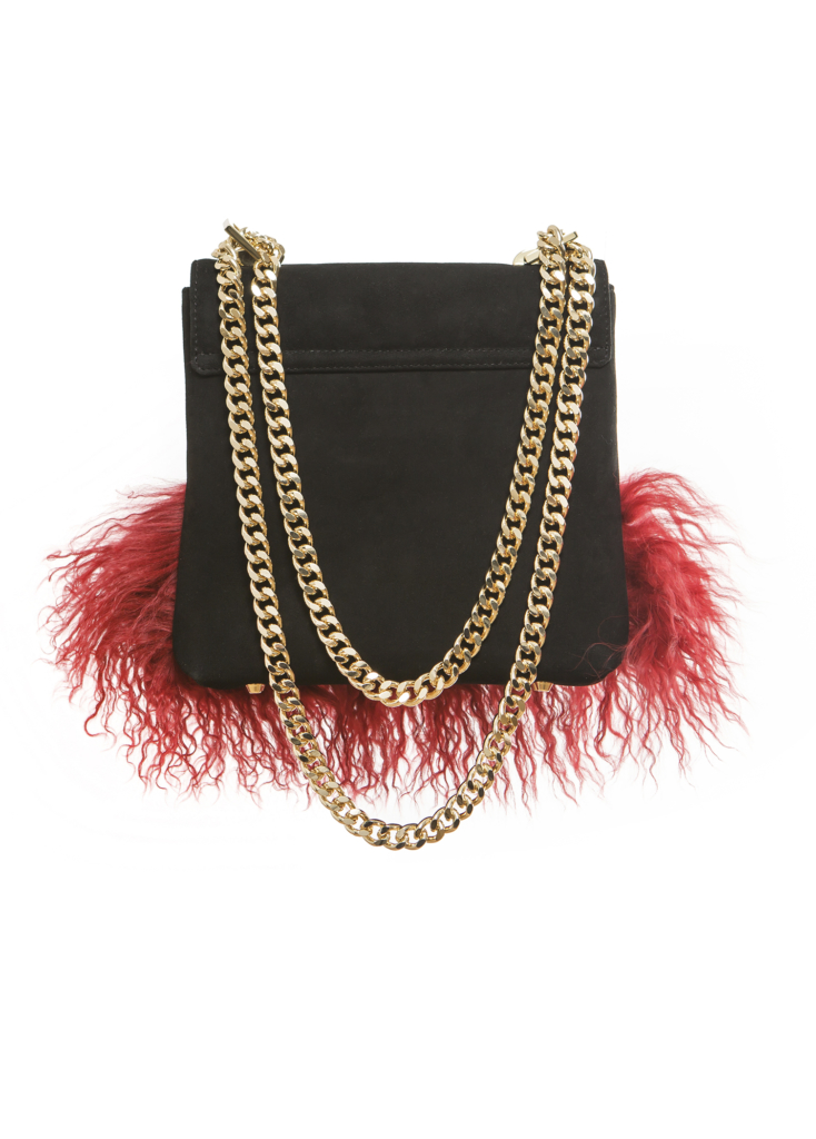 High quality handcrafted leather shoulder bag Giselle midi with Silver Chain and beautiful curly lama fur