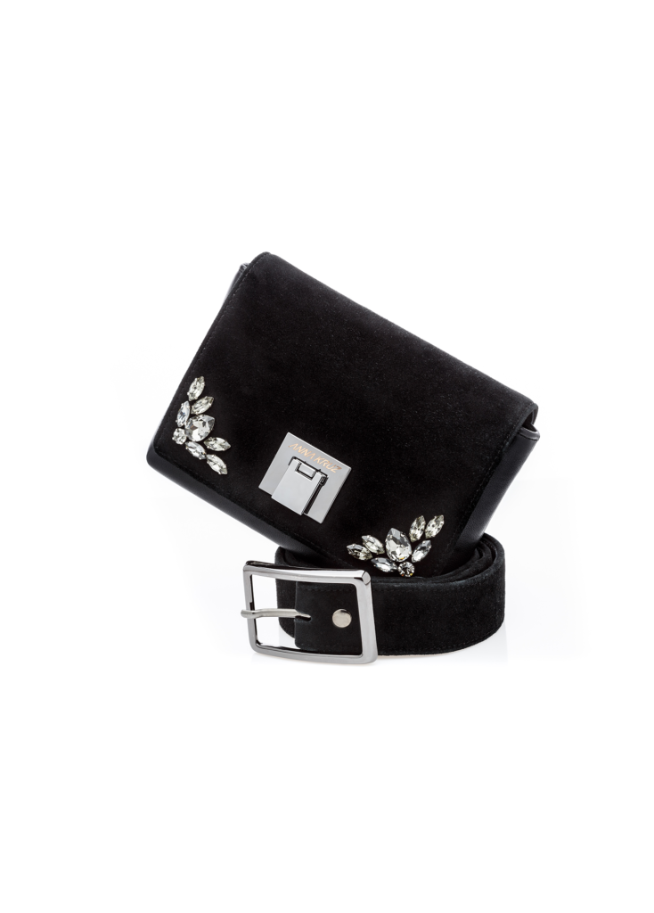 High quality handcrafted leather shoulder bag Giselle midi with Silver Chain and beautiful curly lama fur