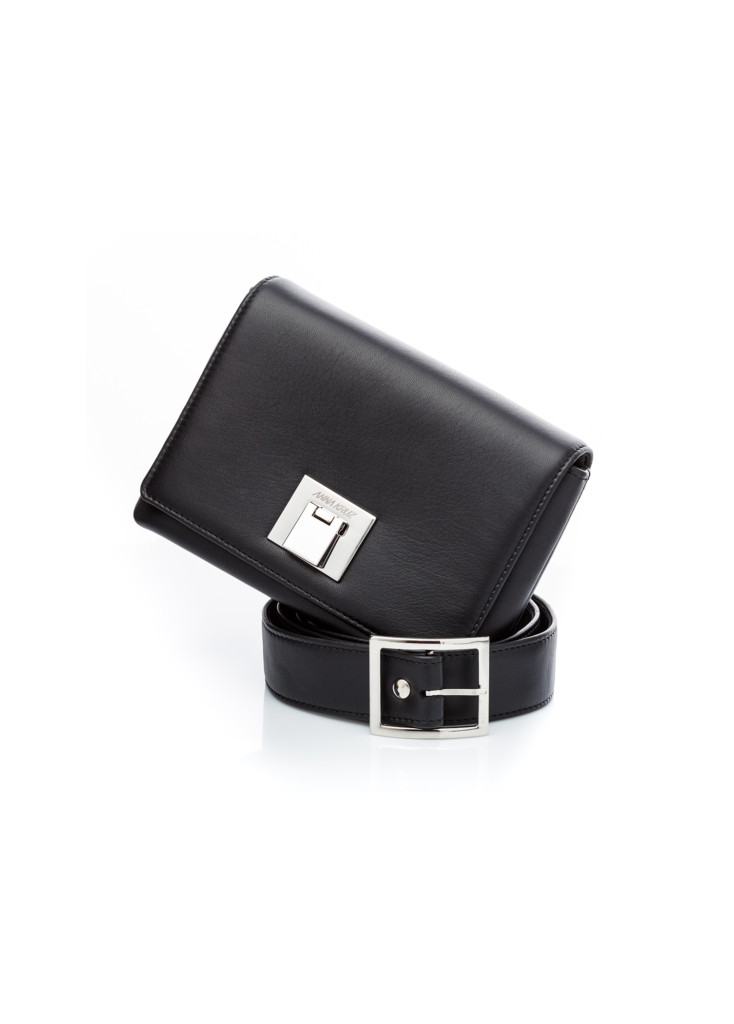 High quality handcrafted leather shoulder bag Giselle with purple, silver blue or black mountain goat fur. Classic of the ANNAKRUZ design – one of the first designer’s bags that she made for herself.