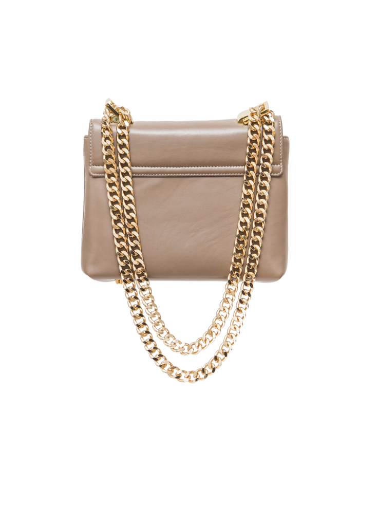 Bag can be worn in three ways – as cross body bag, as shoulder bag and – double chain for handbag!
